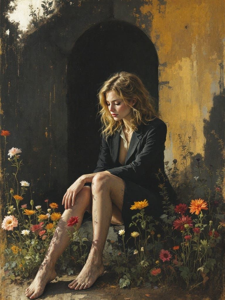This image depicts a poignant scene of longing and disconnection. A dreamlike atmosphere prevails, with a sense of abandonment and melancholy. The artwork explores themes of impermanence and the complexities of human relationships.