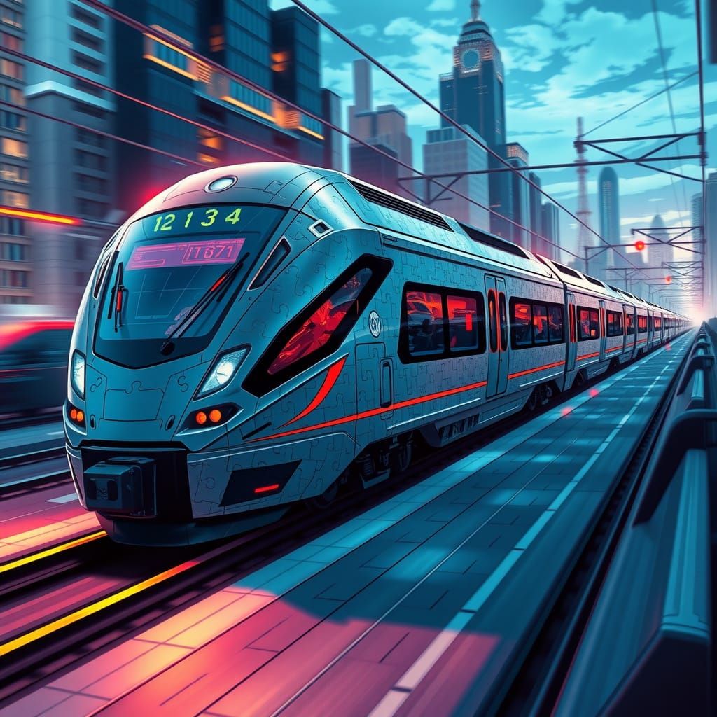 Design your own futuristic train images with our free AI image generator, perfect for fanfiction and puzzle tiles art