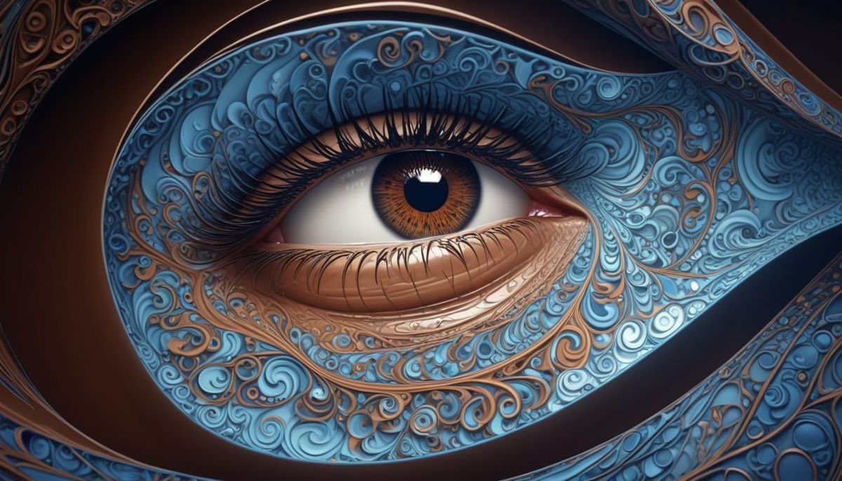 A portrait of a beautiful, curvy woman made of vibrant chocolate. The image features piercing eyes and abstract fractal designs with 3D shading.