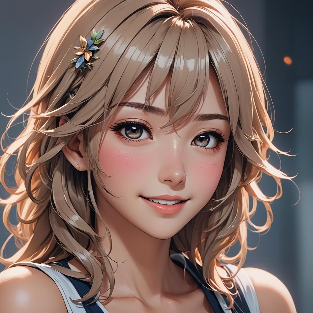 Close up of a gorgeous beautiful woman giving a shy flirty smile, Masterpiece, Best Quality, flat, Manga Scan, Anime, cinematic lighting, drawn Art, by Studio Trigger, clip studio paint, Anime Wallpaper, Deep Color, Cel-Shaded By artist "anime", 3d anime art, inspired by WLOP, Artstation, #genshinimpact ...