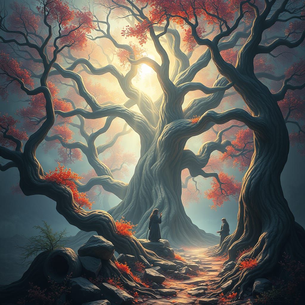 This enchanting image features a majestic pathwalker cradled in the Great Tree, surrounded by vibrant colors and ethereal beauty. Inspired by the style of Donato Giancola, this digitally painted masterpiece combines stunning 4K resolution with captivating composition and magical ambiance.