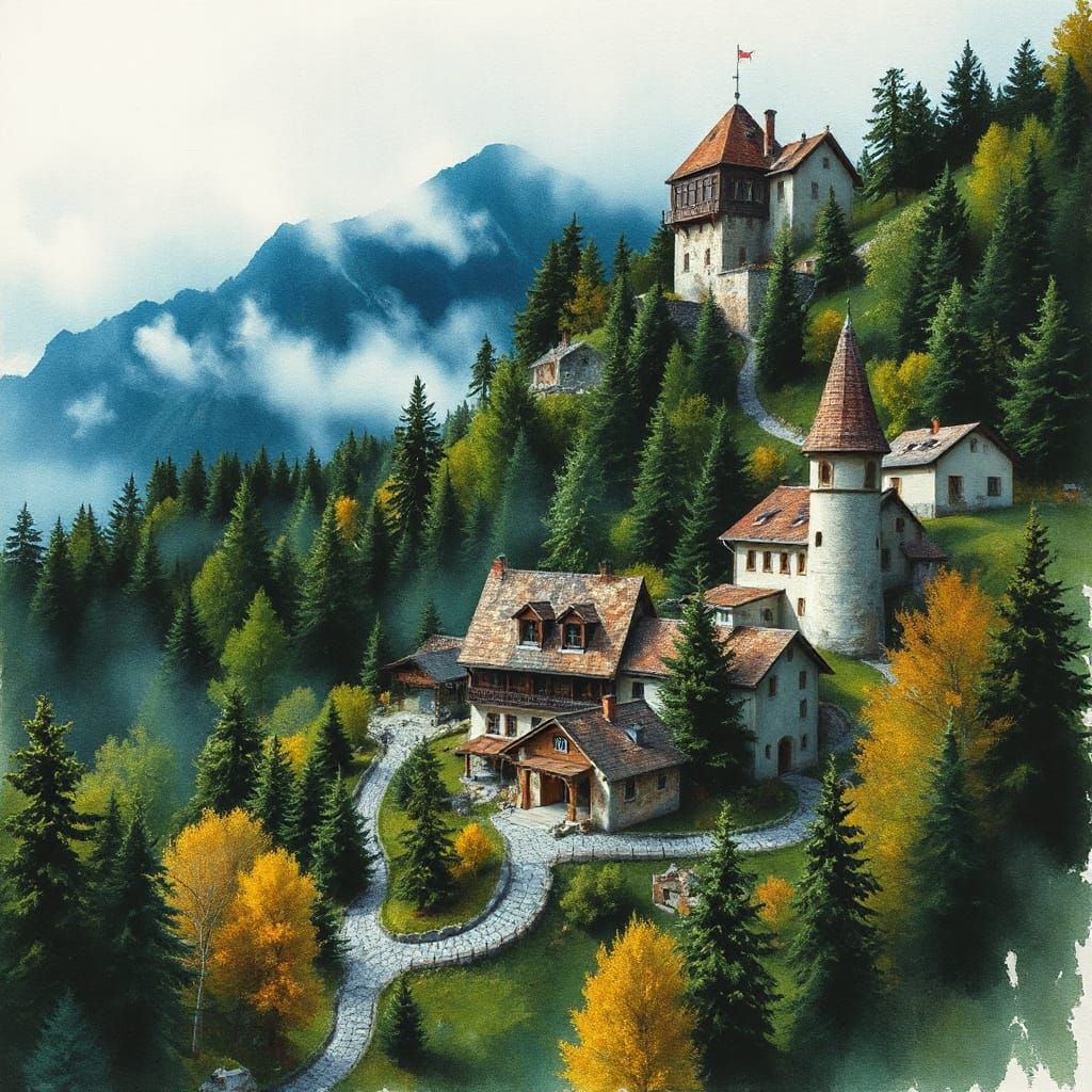 Create your own watercolour or abstract expressionist paintings of mountain villages with our free AI image generator.