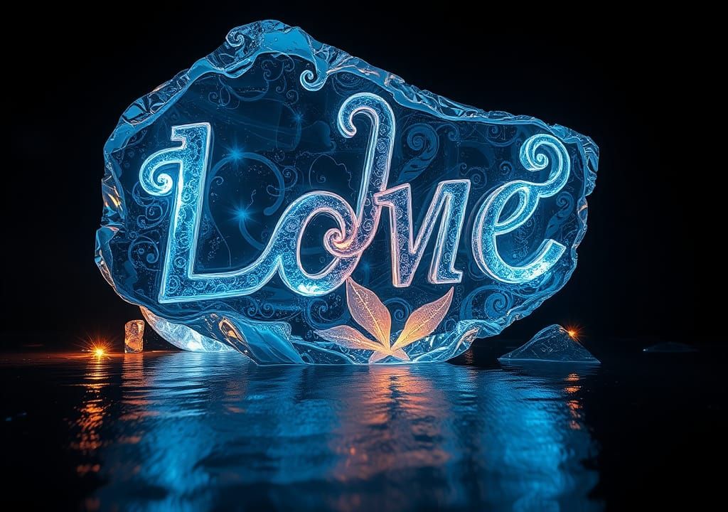 A captivating image of a suspended ice fragment over dark water, lit by headlights. This kinetic art piece features filigree patterns, translucent smoke, and neon-lit radio lines, creating a dramatic, hyperrealistic scene.