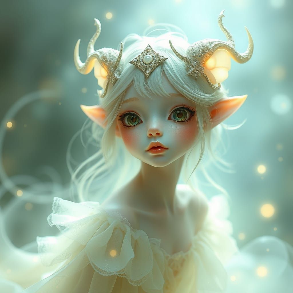 A serene image of a mystical creature, Annime, radiating an aura of gentle magic. The ethereal being possesses delicate features, creating a dreamlike and otherworldly presence.