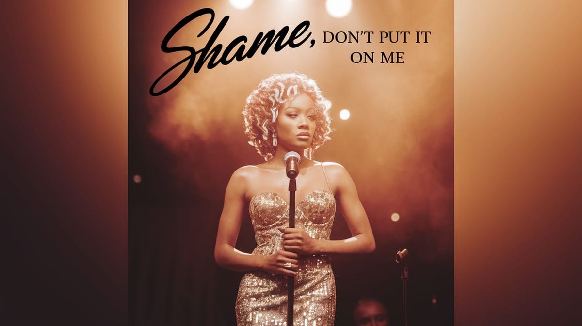 This vintage-inspired album cover features a captivating R&B singer on stage, surrounded by warm smoky lights and elegant gold tones. A slender Black woman with curly hair and a shimmering dress takes center stage, radiating intensity and emotion.
