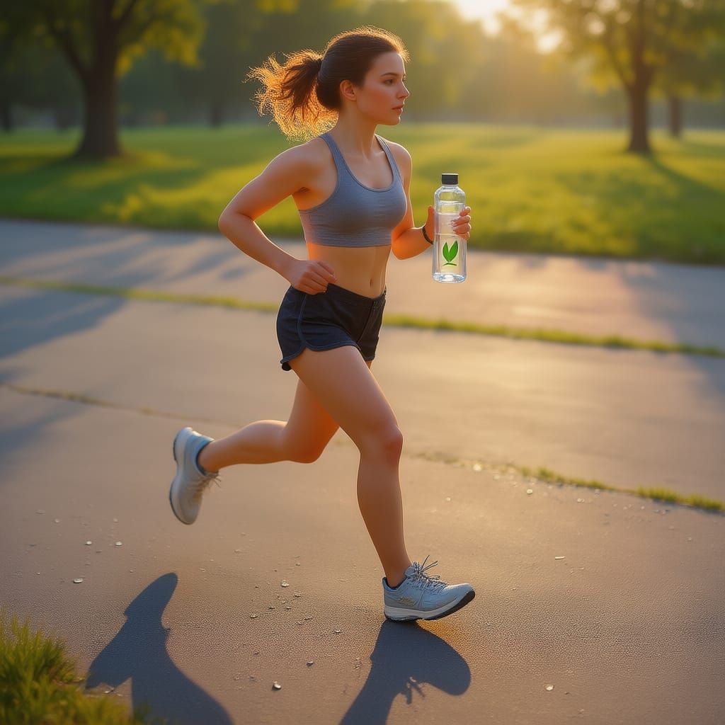This impressionistic oil painting captures a fit young woman jogging in the soft glow of early morning. Her movement is emphasized with bold brushstrokes and a rich color palette.