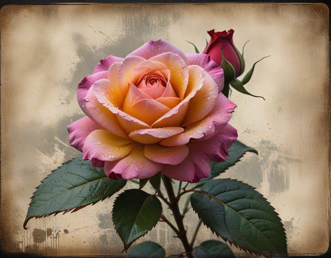 This image depicts a princess adorned with a rose, rendered in a distinctive native grunge style reminiscent of Rembrandt's masterful lighting and texture.