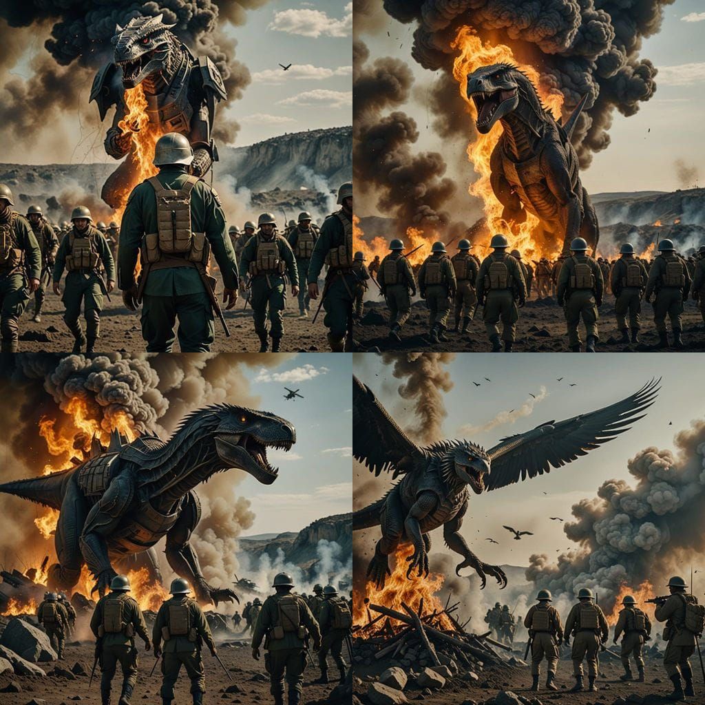 A dramatic film still of angels descending amidst fire and smoke. Hail falls in this atmospheric, cinematic scene with post-processed color grading.