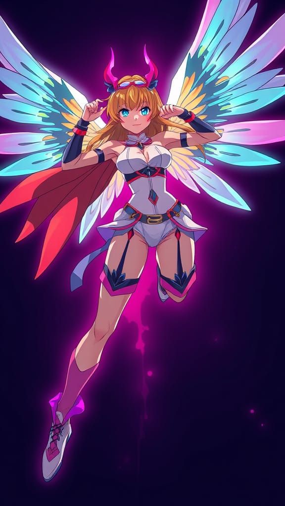 This image features a dynamic anime character in a vibrant outfit, showcasing bold lines and deep colors. It's rendered with cinematic lighting and cel-shaded textures, reminiscent of manga scans.