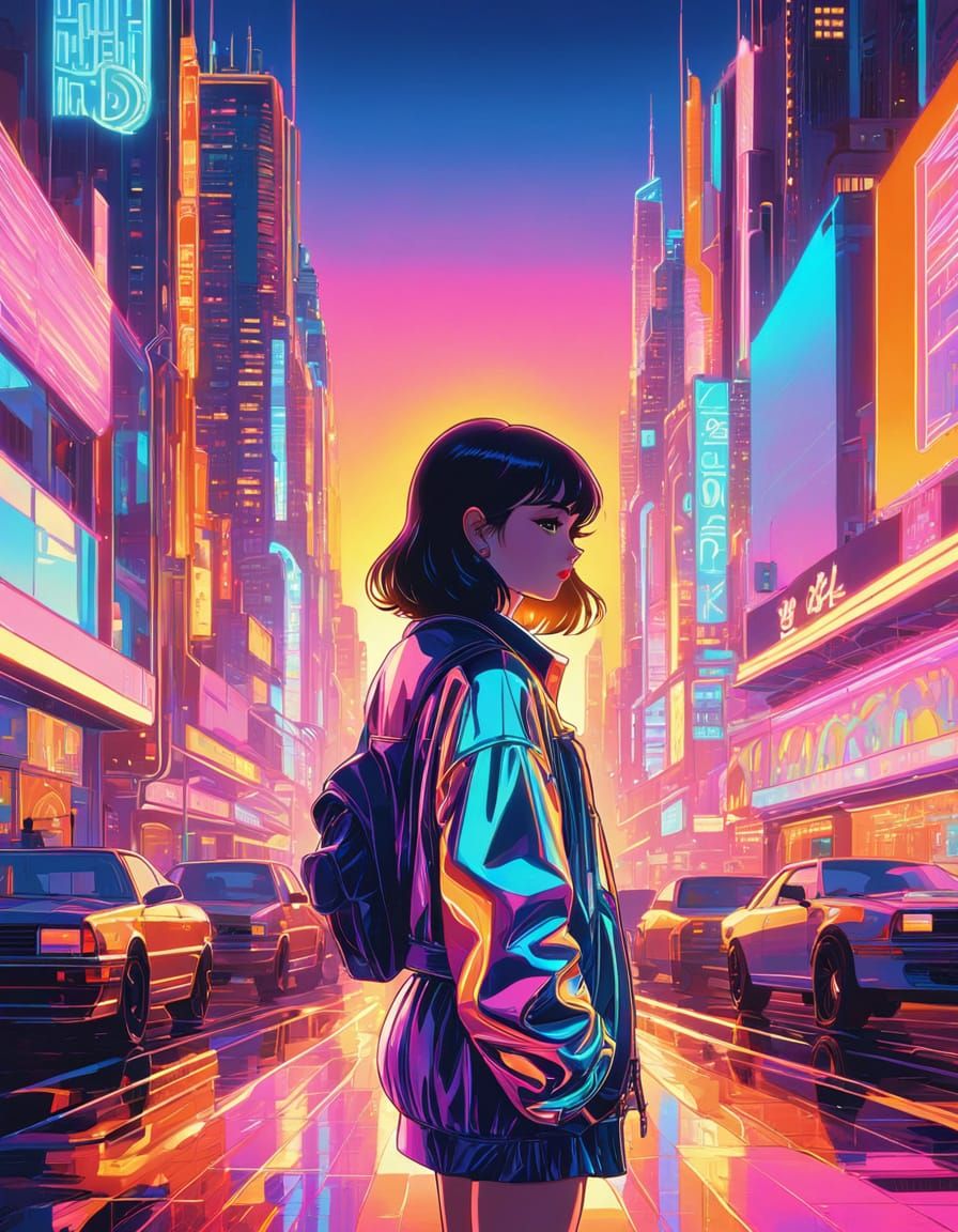dystopian, pop art, contrasting colors, holographic, maximalist, anime, resin cast, collage
