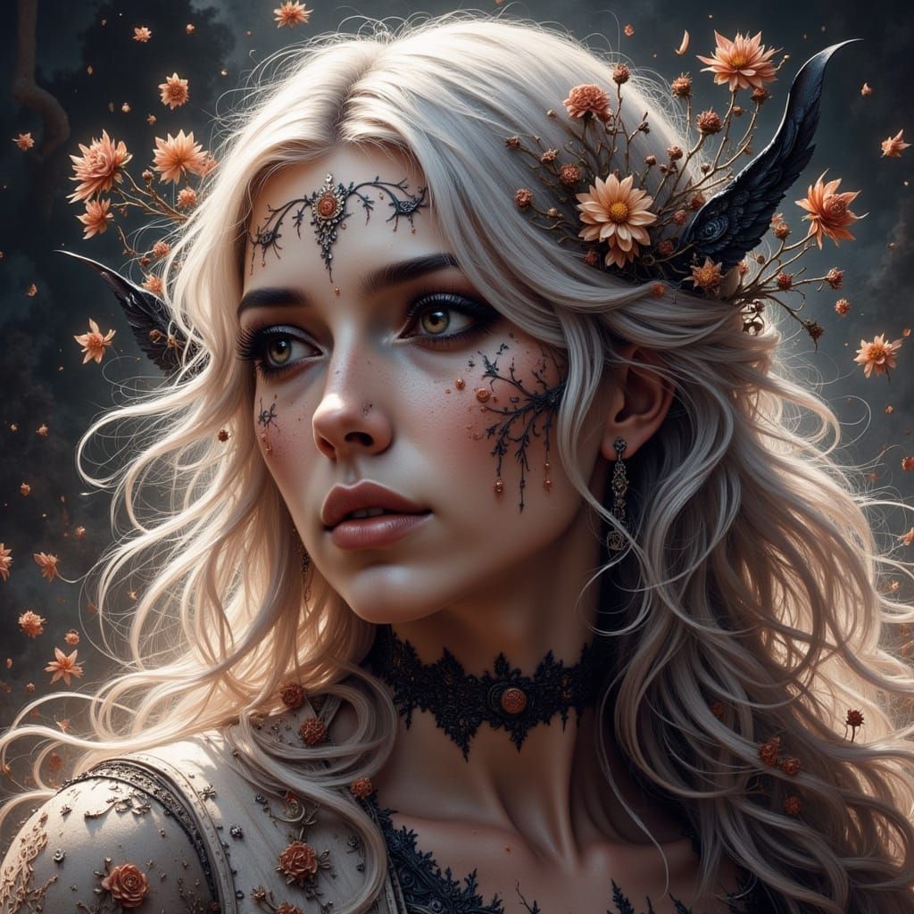 An AI-generated image exhibiting watercolor and comic art styles. The artwork features glowing runes, lending an ethereal and otherworldly effect to the portrait.