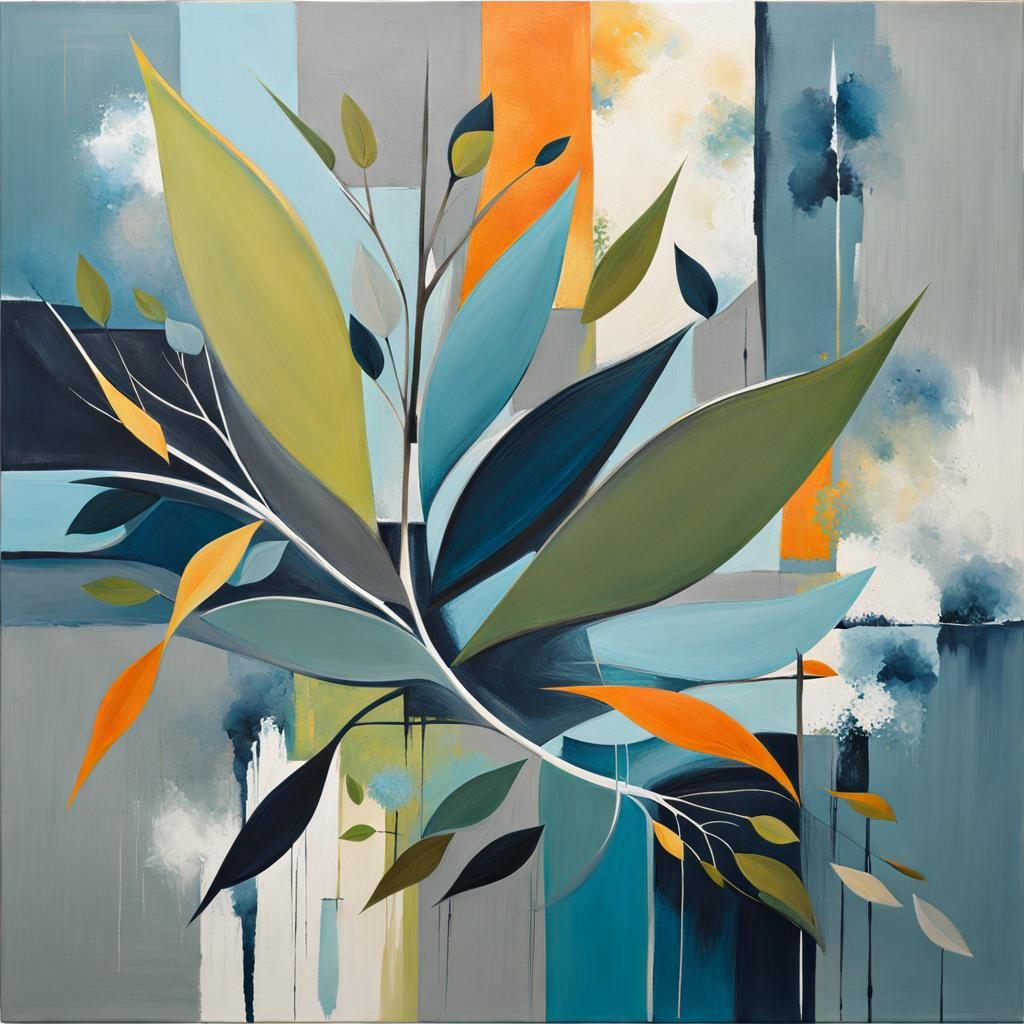I like the contrast of movement of the branch and its natural curve with the geometric division of the background. I like also palette of colors. I think the picture shows well your idea of "tranquility and melancholy".