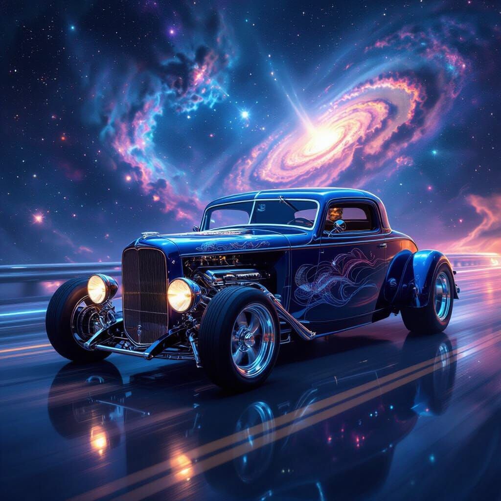 Easily design unique celestial hot rods with our free AI image generator. Explore endless cosmic possibilities!