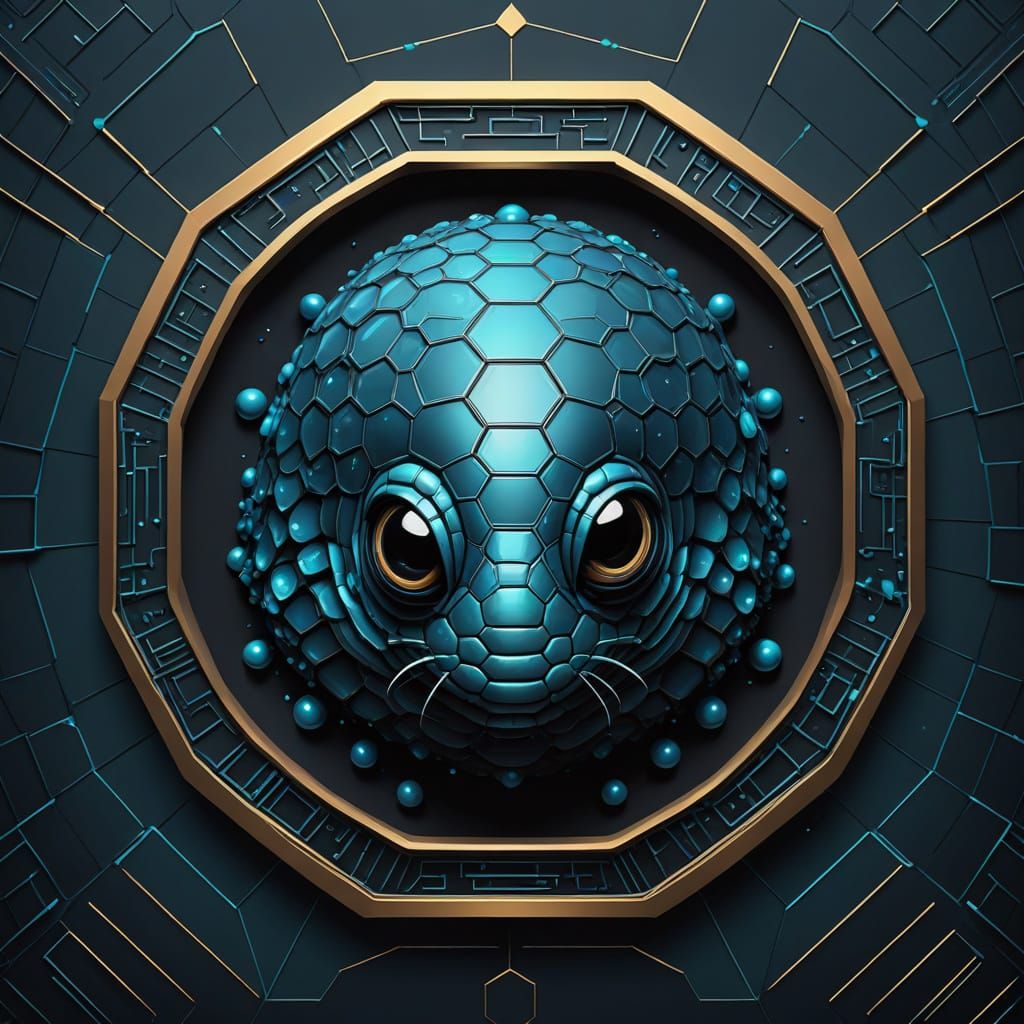 This digital art piece showcases a slug with sharp scales and bold, bright colors, reminiscent of Andy Warhol's screen prints and Bauhaus architecture. Geometric shapes and sharp lines create a futuristic, high-contrast image with a metallic sheen.