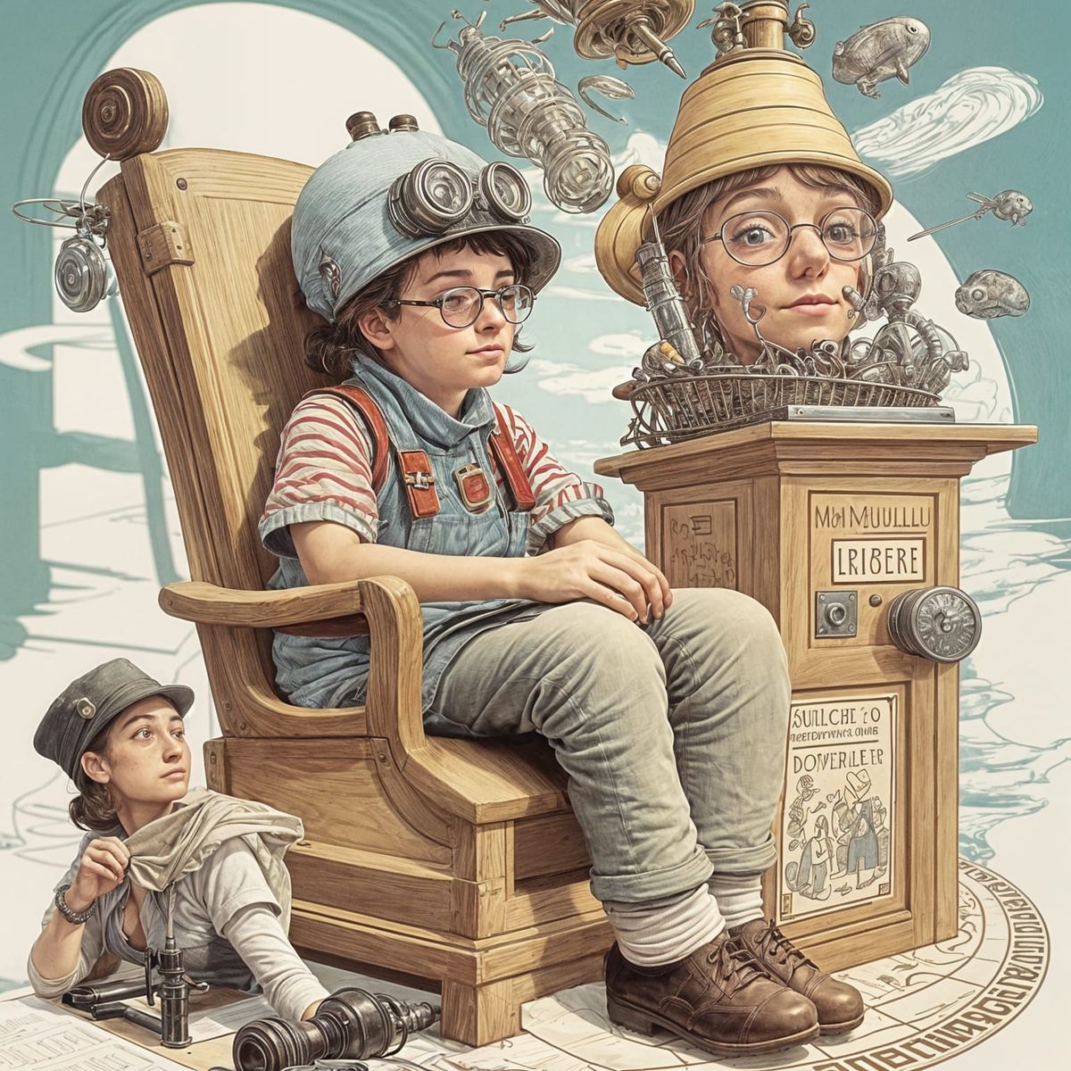 A naive art illustration of a humorous cafeteria scene between Lisa and Martin Prince, set in a dynamic and colorful environment with deep tones and digital illustration style.