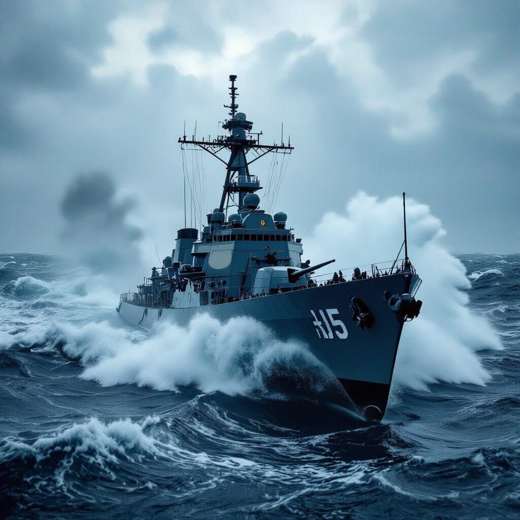 Easily generate your own dramatic navy ship images in stormy seas. It's free and simple!
