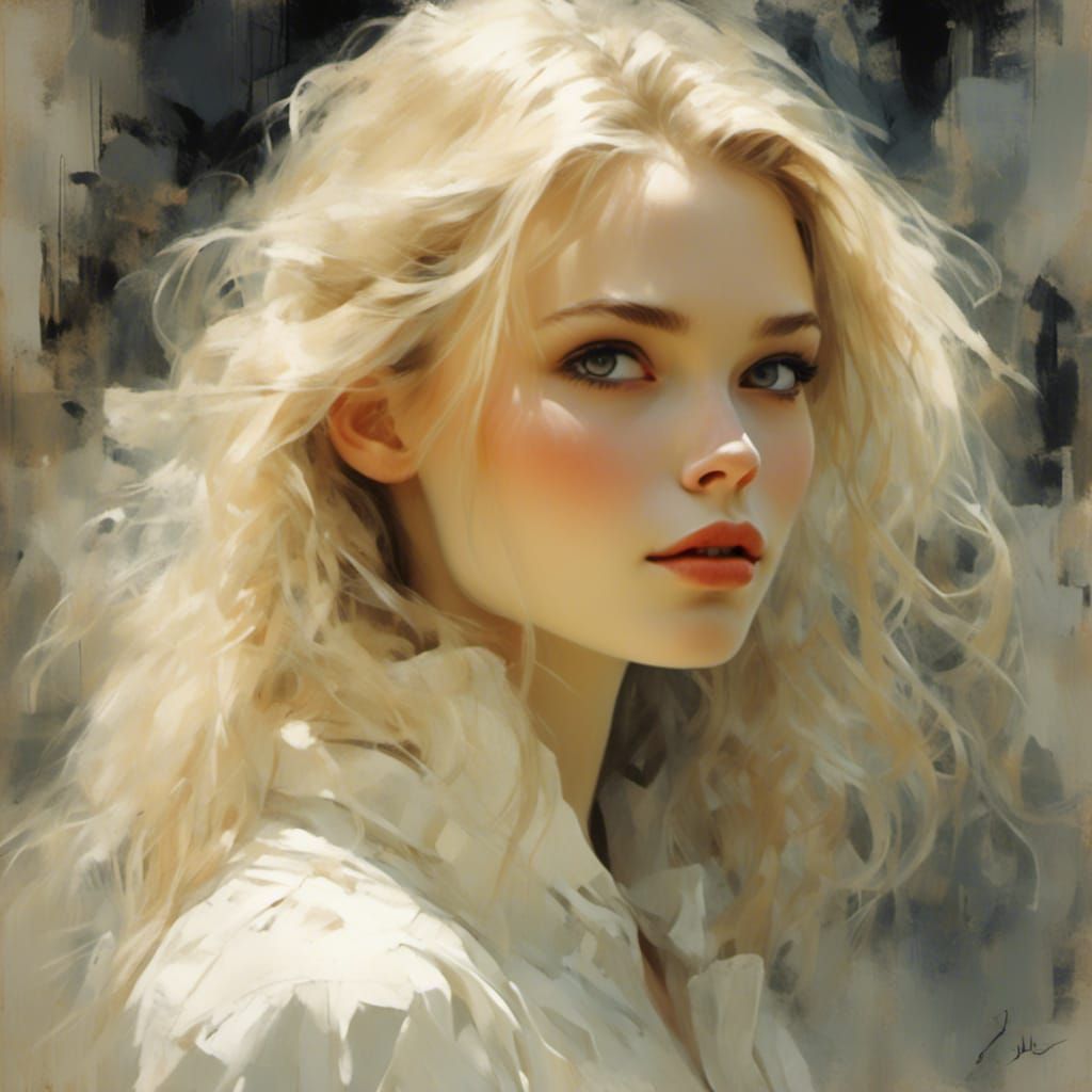 A striking picture of an elegant woman with captivating eyes. This portrait showcases soft colors, delicate linework, and painterly strokes, creating a cinematic and subtly melancholic atmosphere.