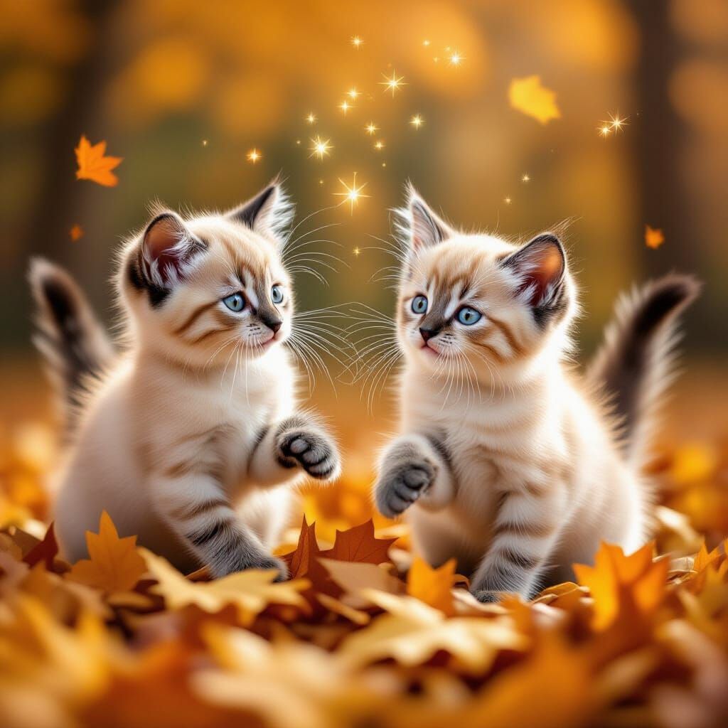 Generate adorable Siamese kittens playing in autumn leaves or any scene you imagine. Free and easy AI image creation.
