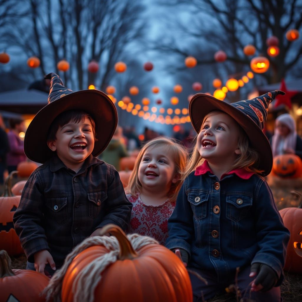 Generate your own happy Halloween festival images, featuring laughing children, with our easy and free AI tool.