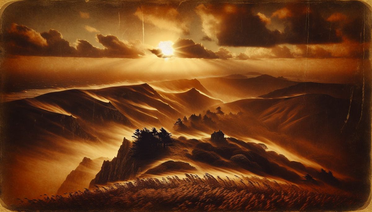 This image captures an expansive view from Point Loma on a windy autumn afternoon. The scene evokes both beauty and sadness, with a chill wind and the promise of a warm home nearby.