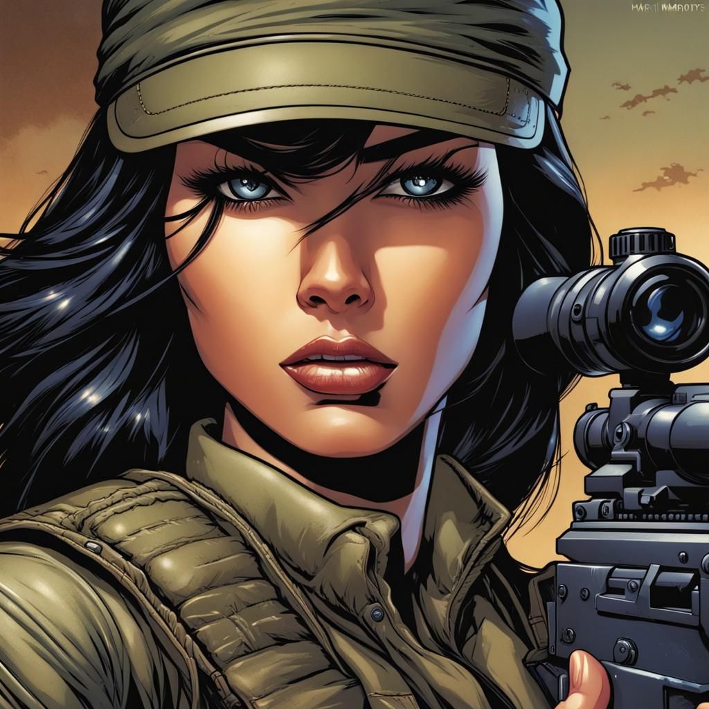 Create your own female sniper characters with black hair using our free AI image generator. It's easy and fun!