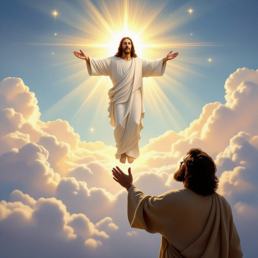 This image depicts a celestial vision. It shows a divine figure surrounded by heavenly light, embodying a spiritual and ethereal atmosphere.