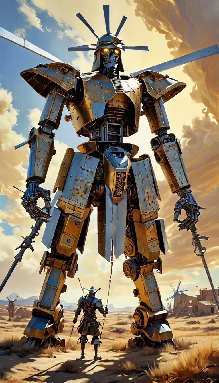 Create your own epic battles between classic literature and futuristic technology with our free AI image generator.