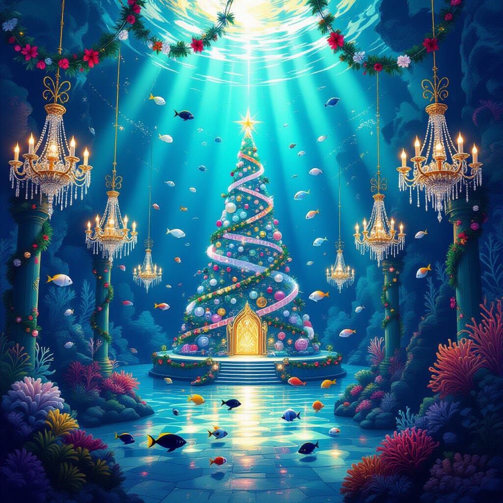 Design your own magical underwater Christmas scenes. Free and easy AI image generation for your unique ideas.