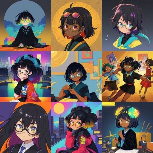 A stunning anime-style portrait of a young African woman, rendered in vibrant colors and cinematic lighting, with a focus on flat, cel-shaded art.