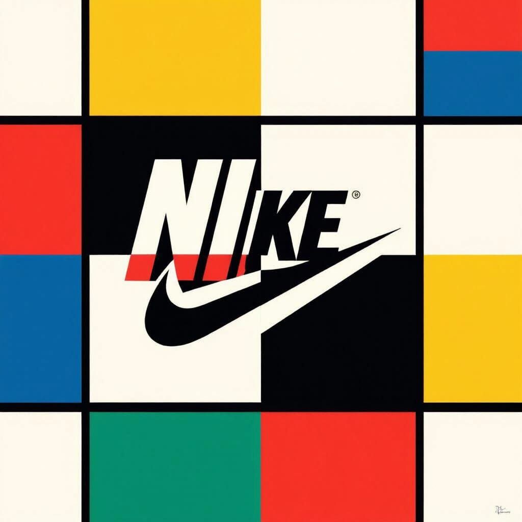 This image shows the Nike logo reimagined with sleek typography and vibrant colors. The design incorporates elements of minimalist, geometric, and bold graphic styles.