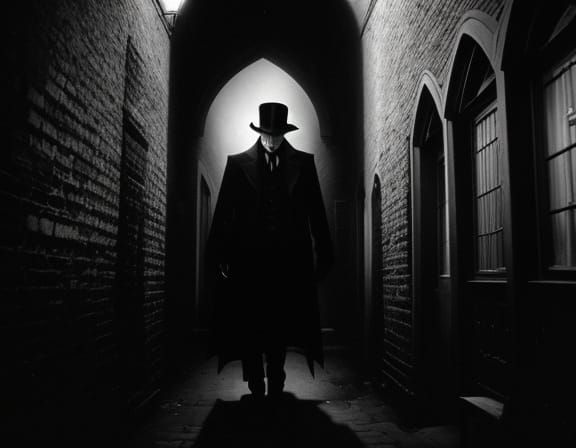 long shot, archival sepia-toned photograph, actor Max Schreck as Nosferatu standing in a tall window in the 1922 film