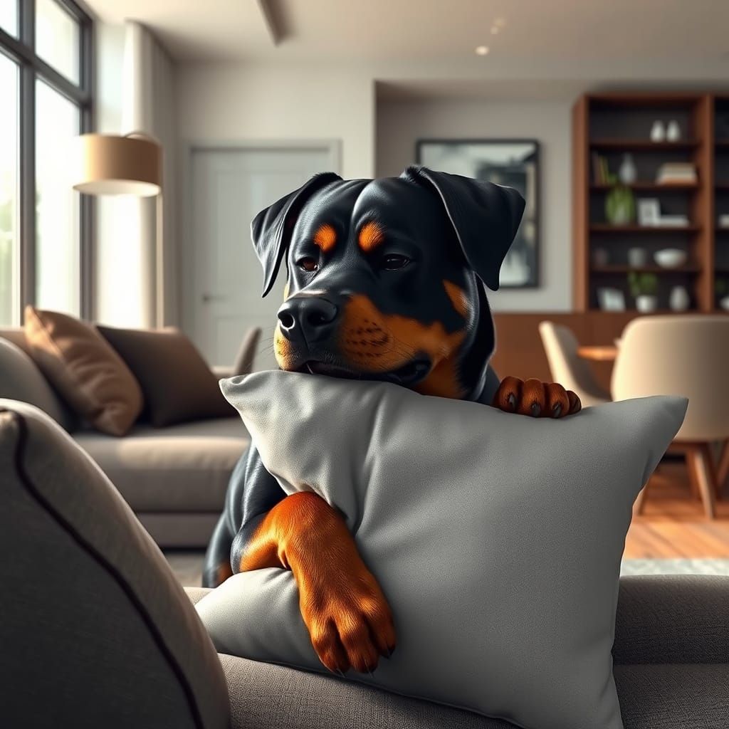 Create realistic images of your Rottweiler (or any pet!) in a cozy living space with our free AI image generator.