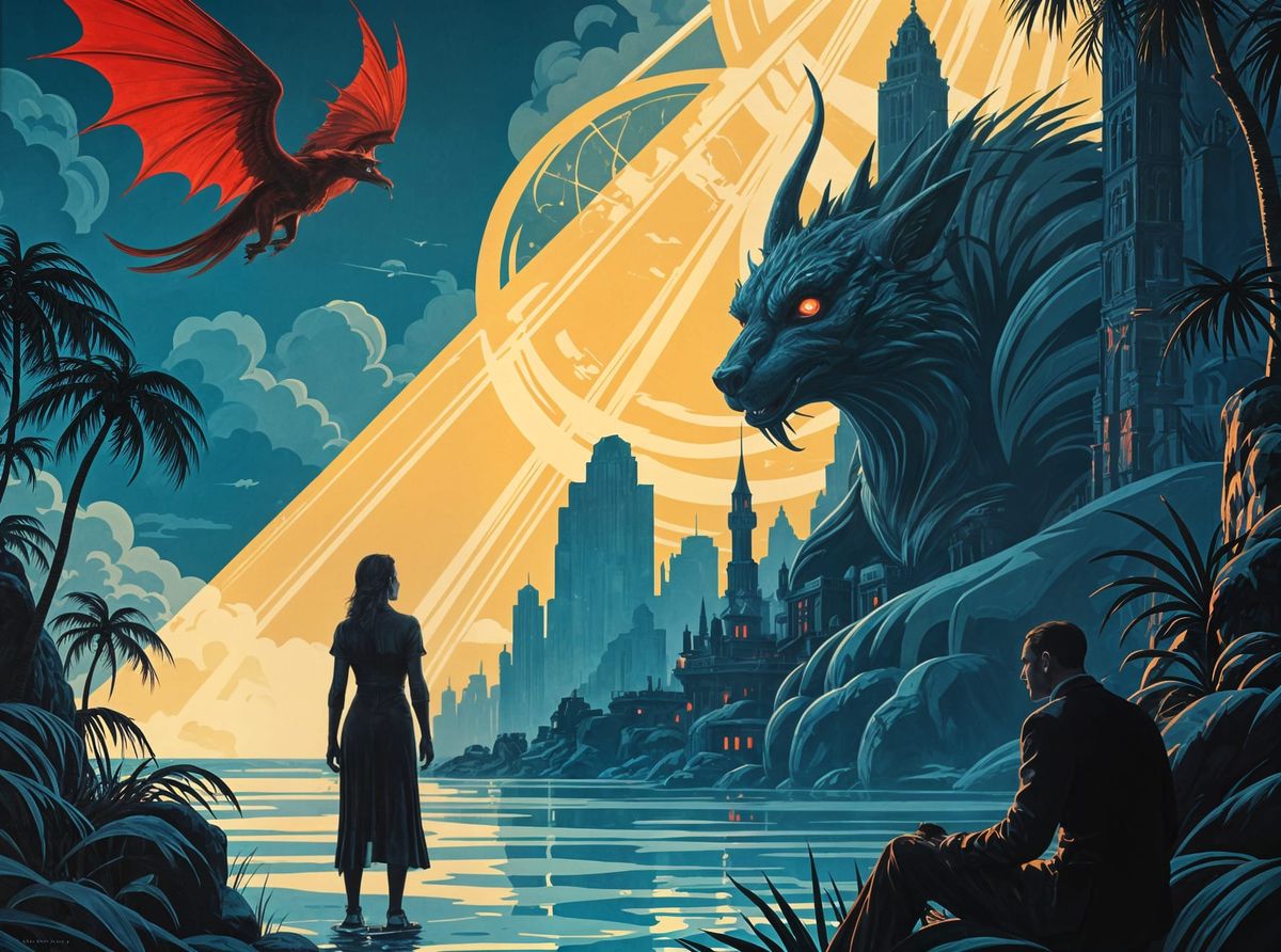 I want a picture of a 1940's type magazine cover, Pulp fiction art. detailed matte painting, deep color, fantastical, intricate detail, spla...