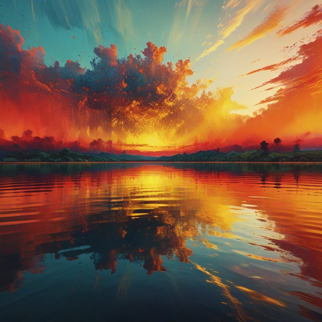 Create your own colorful abstract lake images with our free and easy AI generator.