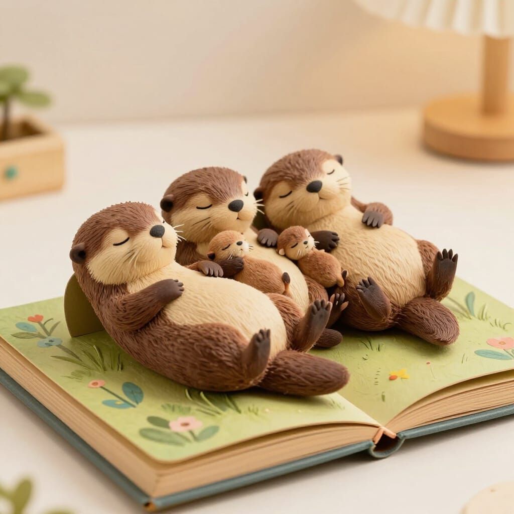 Generate your own adorable pop up book scenes of otters and their babies with our free AI tool.