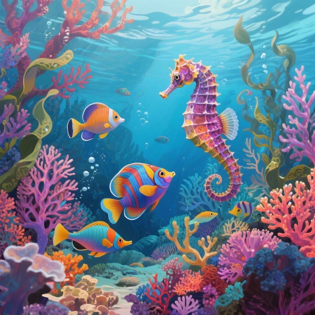 Easily generate stunning seahorses, tropical fish and coral reef scenes with our free AI image generator.