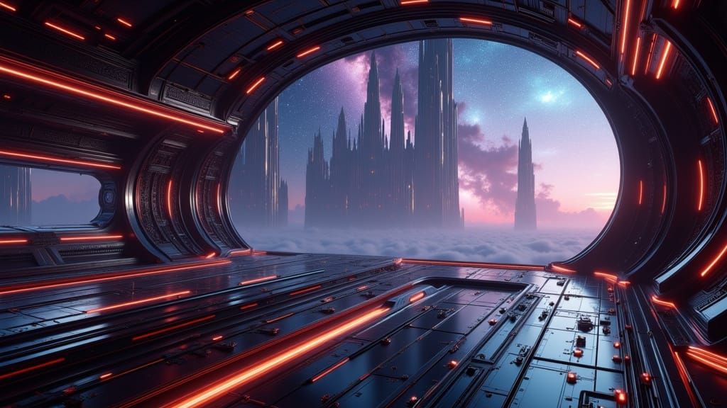<lora:Rococowave-Flux:1.0> Photo Realistic. Will future Humanity be able to create a deep space colony? Show an observation deck on a massive space station. The background is an image of the milky way galaxy. Use meticulous attention to detail and texture.