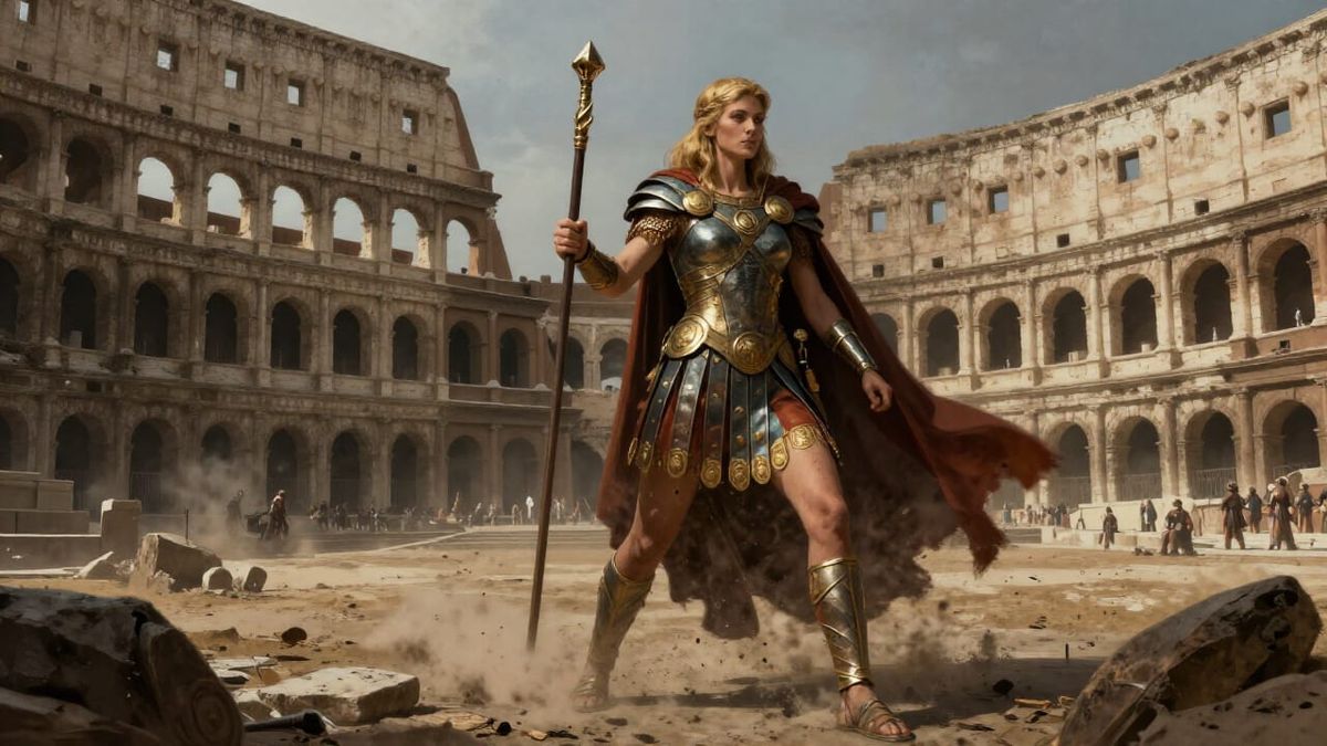 Dominant Female Gladiator in Arena