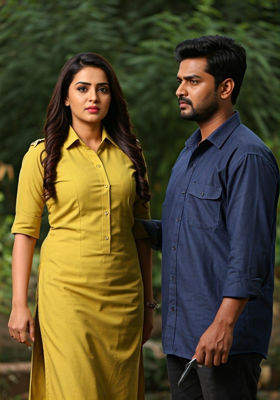 A cinematic snapshot of a policewoman and a charming male suspect in a light-hearted comedy movie scene, captured in a beautiful and pretty visual style