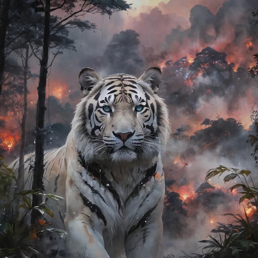 Love this! That tiger is beautiful! The look of fire in the forest makes it quite sad though 💜