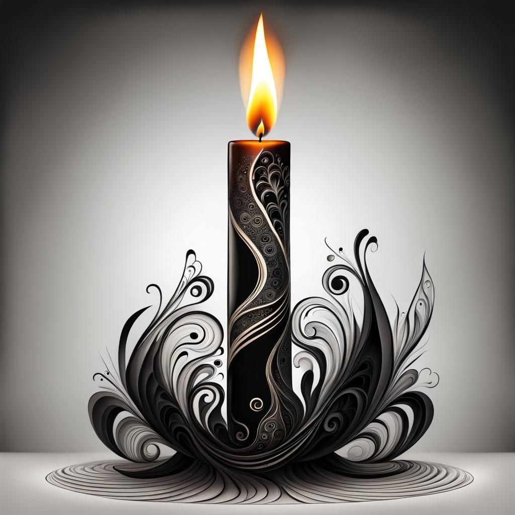 A striking picture of a candle with a large flame set against a dark background. This 3D digital art piece features intricate details and abstract fractal elements in a dark fantasy style.
