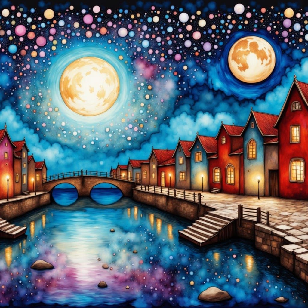 Easily generate your own impressionist paintings of coastal towns on rainy nights with our free AI.