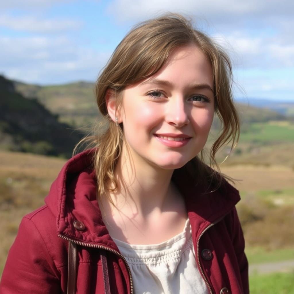 This image depicts a mysterious young girl named Andrea. The AI generated the image based on a simple text prompt.