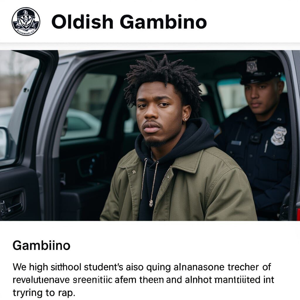 This image shows a young rapper being arrested by police while continuing to rap. The scene depicts a moment of defiance and resistance.