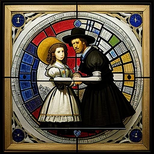 A vibrant abstract painting depicting friendship and eternity. The artwork blends elements of geometric abstraction with classic portraiture techniques.