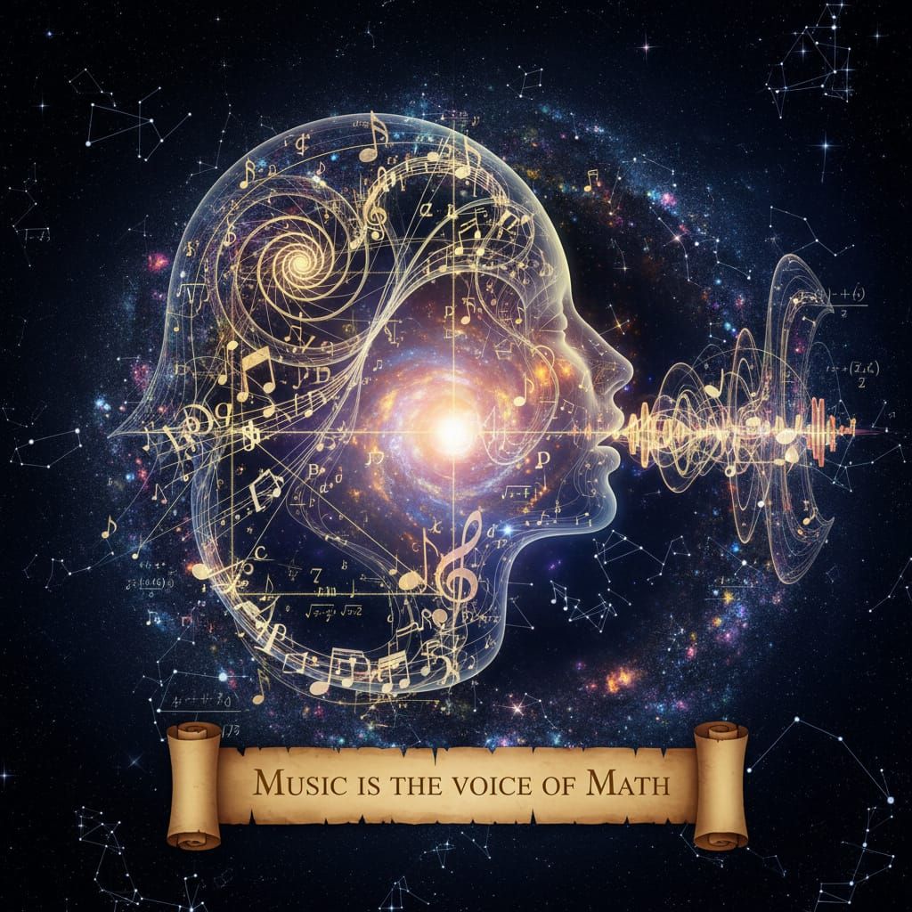 This AI-generated image explores the abstract concept of music as the language of mathematics, visualizing the intricate relationship between sound and numbers.