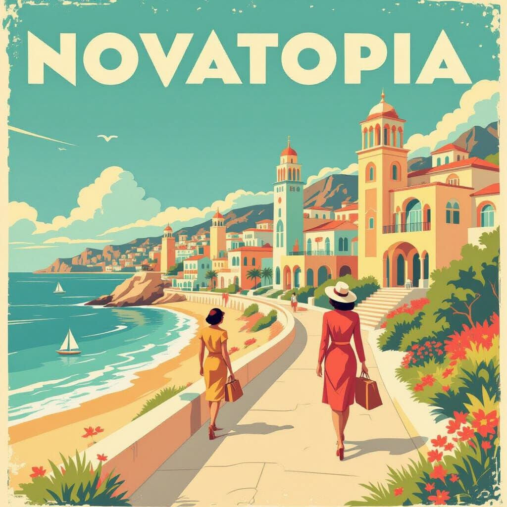 Design your own 1970s-style Novatopia travel posters for free. Easy to use, fully customizable AI image generation.