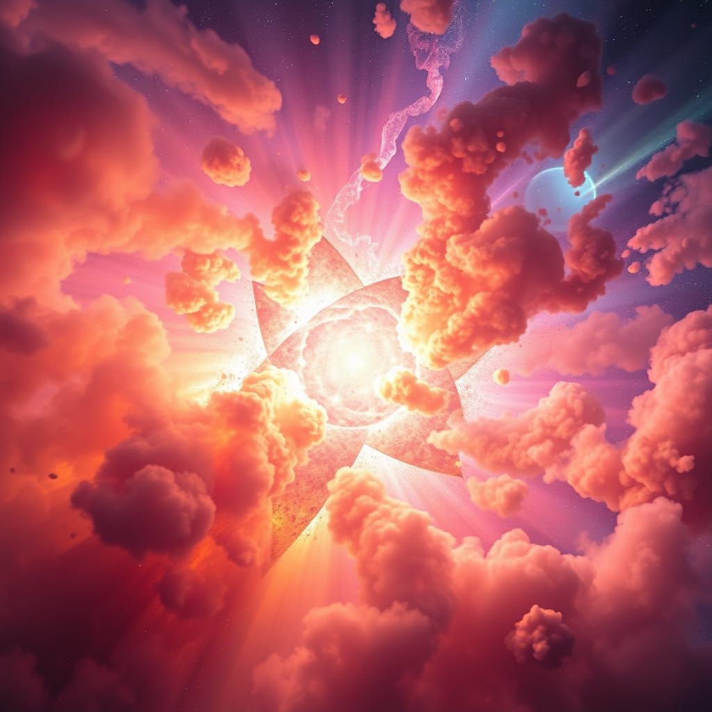 This striking image captures the mesmerizing dance of vibrant gases and dust in a cosmic star birth, with a blend of ethereal and dreamlike qualities reminiscent of sci-fi concept art.