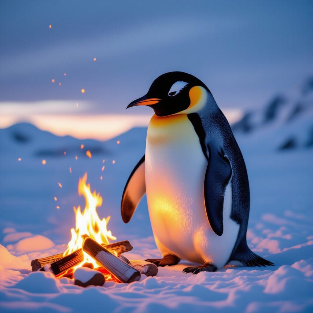 Easily generate unique images of penguins by a campfire. Free, fast, and fun AI image creation.