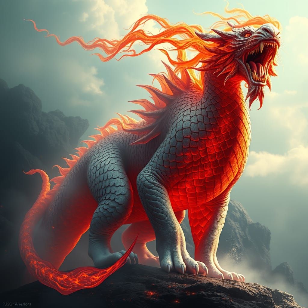 Unleash your creativity and generate your own white tiger lava dragon hybrid images. It's free and easy!
